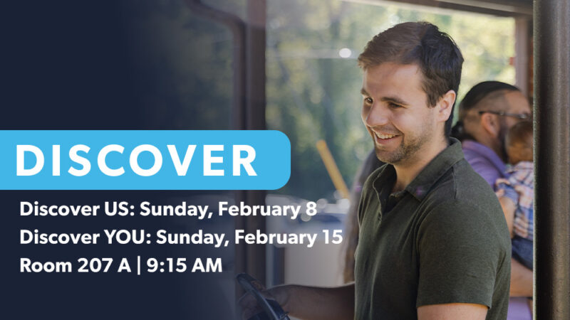 Take your next step by joining Discover Us TODAY, February 8, from 9:15–10:15 a.m., where you’ll learn about our mission, values, and beliefs, followed by Discover You on Sunday, February 15, from 9:15–10:15 a.m., focused on helping you understand how God has uniquely gifted you to serve. These classes are a great way to get connected, ask questions, and find your place in the life of our church.